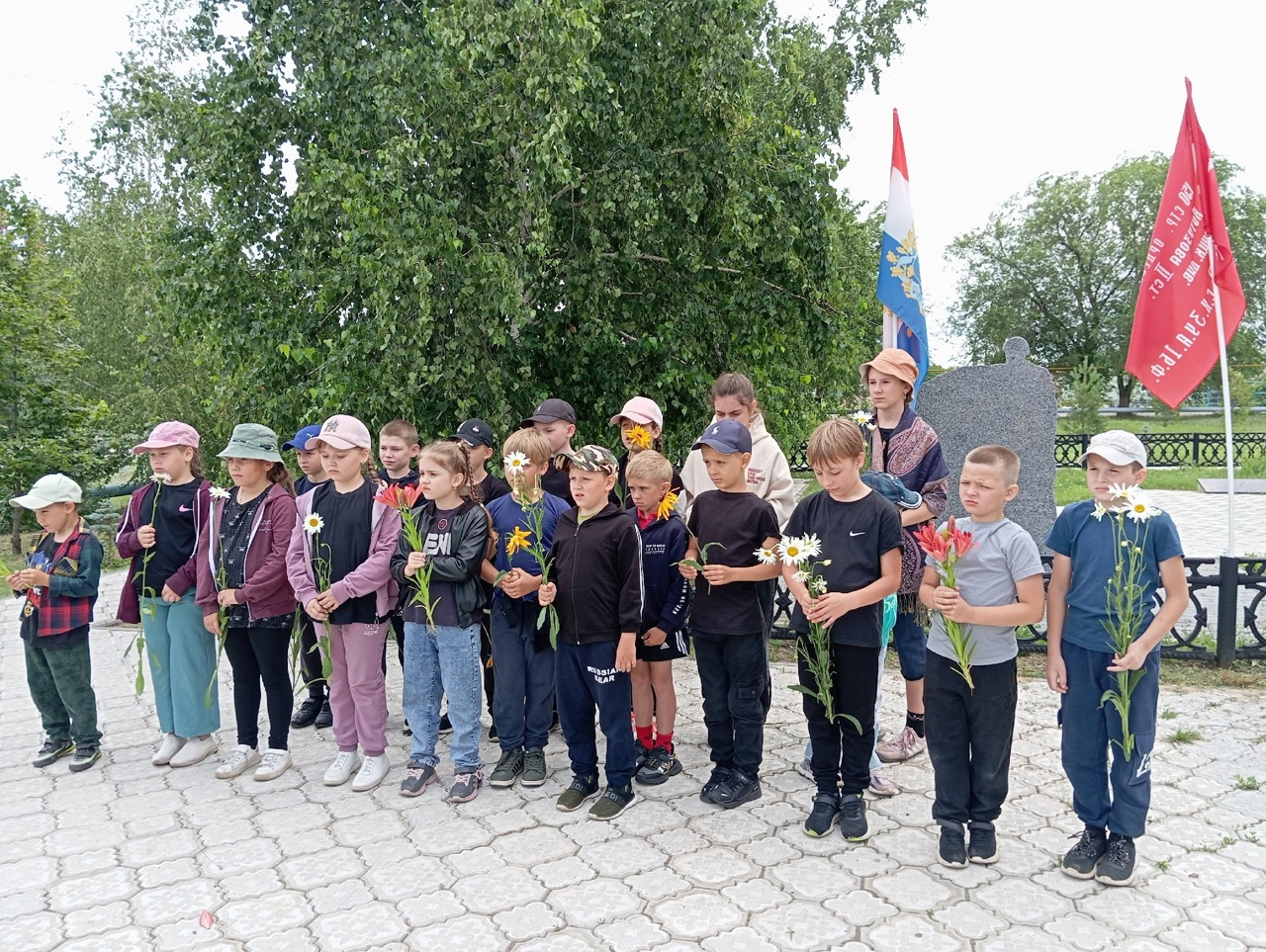 Сегодня прошёл двенадцатый день в пришкольном лагере «Росток», посвящённый Дню памяти и скорби. Утро началось с торжественной траурной линейки, где ребята почтили память погибших героев Великой Отечественной войны минутой молчания.
