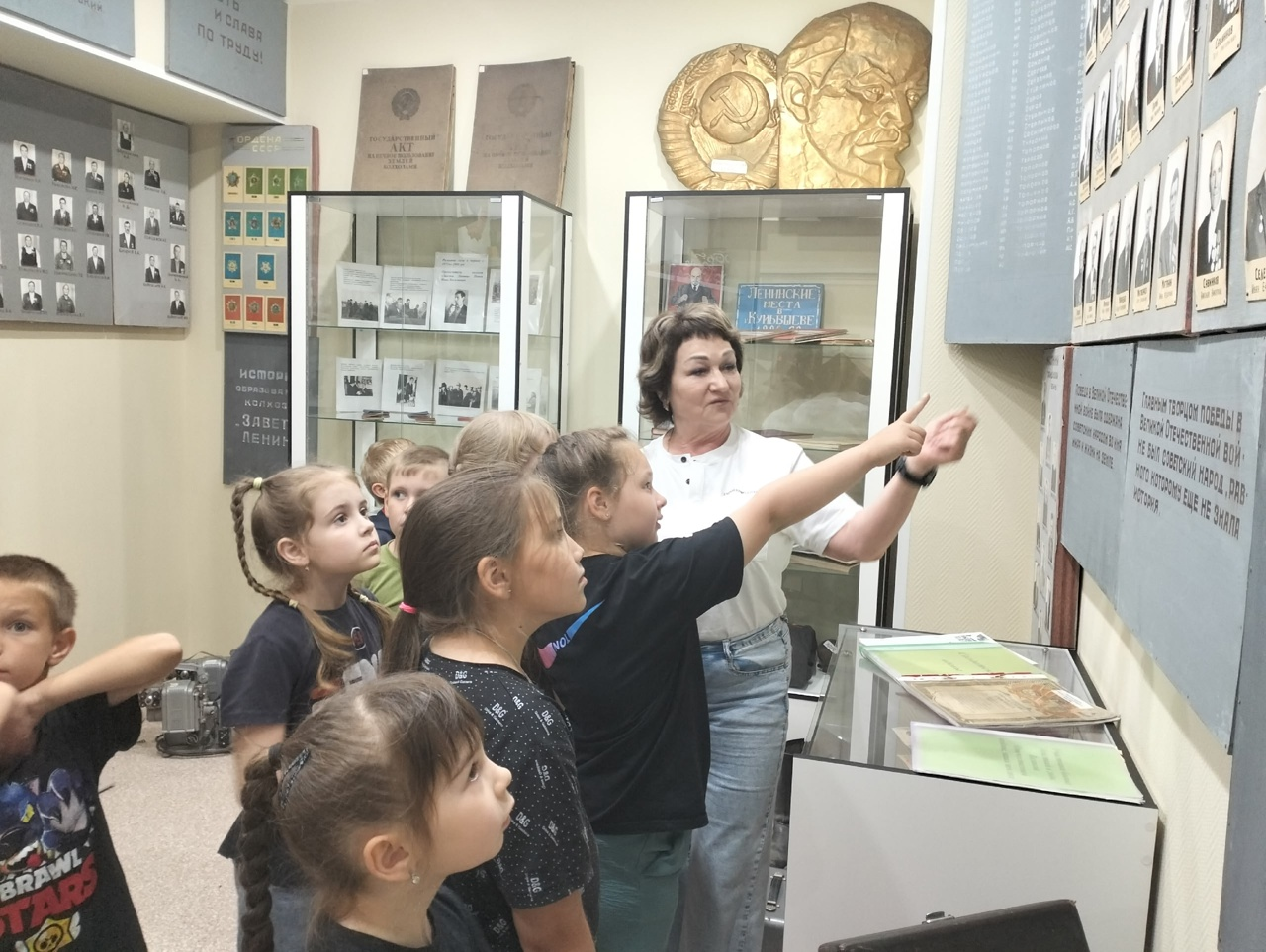 Далее воспитанники лагеря посетили музей Сельского дома культуры и школьный музей «Никто не забыт, ничто не забыто». Здесь дети познакомились с историей родного края, узнали больше о подвигах своих земляков и увидели уникальные экспонаты времён войны.