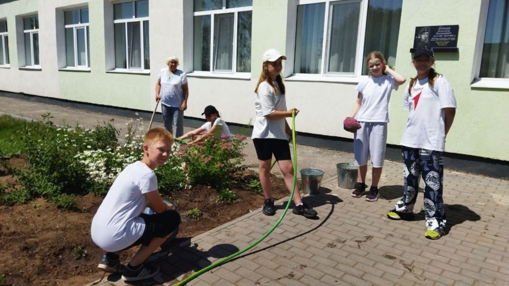 Во второй половине дня ребята приняли активное участие в трудовой акции «Трудовой десант»: занимались поливкой клумб, украшая территорию школы цветами и зеленью.